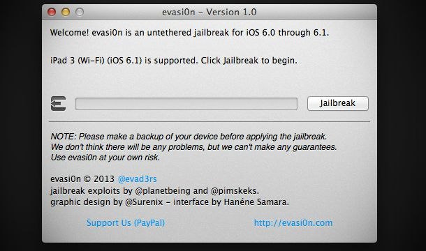 همانگونه که میدانید، روز گذشته تیم evasi0n، جیلبریک دائمی نسخه ۶.۱ سیستمعامل iOS را منتشر کرده و با انتشار یک نرمافزار، به کاربران امکان داده که از طریق مک، ویندوز و لینوکس دستگاه خود را جیلبریک کنند. در ادامه با زومیت همراه باشید تا با روش جیلبریک کردن دستگاه اپلی خود آشنا شوید.