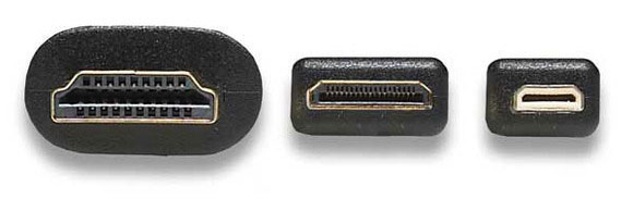 سه اندازهی متداول کانکتور HDMI در تصویر زیر نمایش داده شدهاند: